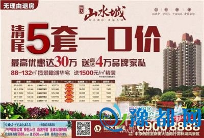 恒大山水城本周特惠5套瞰湖豪宅,最高优惠达30万,送高达4万品牌家私,送1500元/㎡精装,钜惠来袭,置业良机,不容错过!