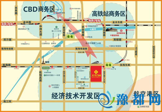 以航海路,陇海快速路,金水路为主的“三纵”贯穿郑州东西;以中州大道,107国道,京港澳高速,四港联动的“四横”大道连通南北;纵横交织的交通动脉织就黄金交通网,机场高速大大缩短了与世界接轨的时间和距离。乘此地利,提速商务交流,擎起经开资本涌动。进退之间的咫尺天下随心掌握。