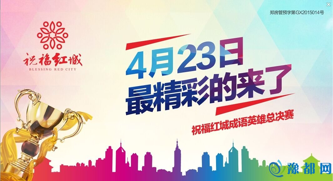 4月23日上午9:00—11:00,祝福红城成语英雄即将迎来巅峰对决!谁将杀出重围、问鼎冠军?谁将披荆斩棘卫冕王冠?谁将把万元现金大奖抱回家?以真诚与敬畏的心情,我们期待您的到来!