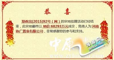 《18宗地井喷出让 历时8小时康桥拿下管城地王》由河南新闻网-豫都网提供,转载请注明出处:http://house.yuduxx.com/lsgc/287809.html,谢谢合作!