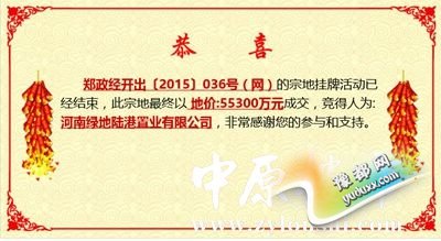 《绿地斥资5.53亿竞得郑州经开区新楼面价地王》由河南新闻网-豫都网提供,转载请注明出处:http://house.yuduxx.com/lsgc/298066.html,谢谢合作!