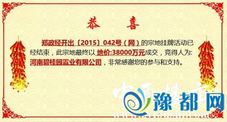 《碧桂园3.8亿元夺得经开区新任楼面价地王》由河南新闻网-豫都网提供,转载请注明出处:http://house.yuduxx.com/lsgc/325545.html,谢谢合作!