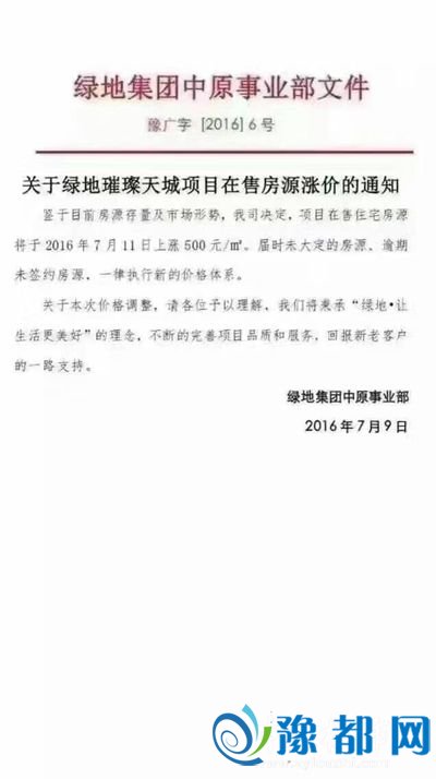 7月8日,郑纺机地王的拍出,引发了郑州地产界的一场大地震,有人说地王的到来说明了郑州的升值潜力,也有人说地王只是来自土地市场的一次非理性的疯狂。然而无论谁对谁非,地王的诞生确实让郑州房价迎来了爆发性的上涨行情,一天之内十余个楼盘纷纷宣布上调房价:
