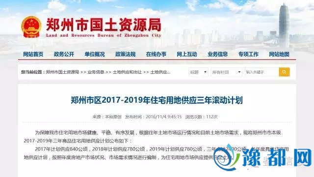 《36000亩!郑州公布未来3年住宅用地供应计划》由河南新闻网-豫都网提供,转载请注明出处:http://house.yuduxx.com/news/498295.html,谢谢合作!